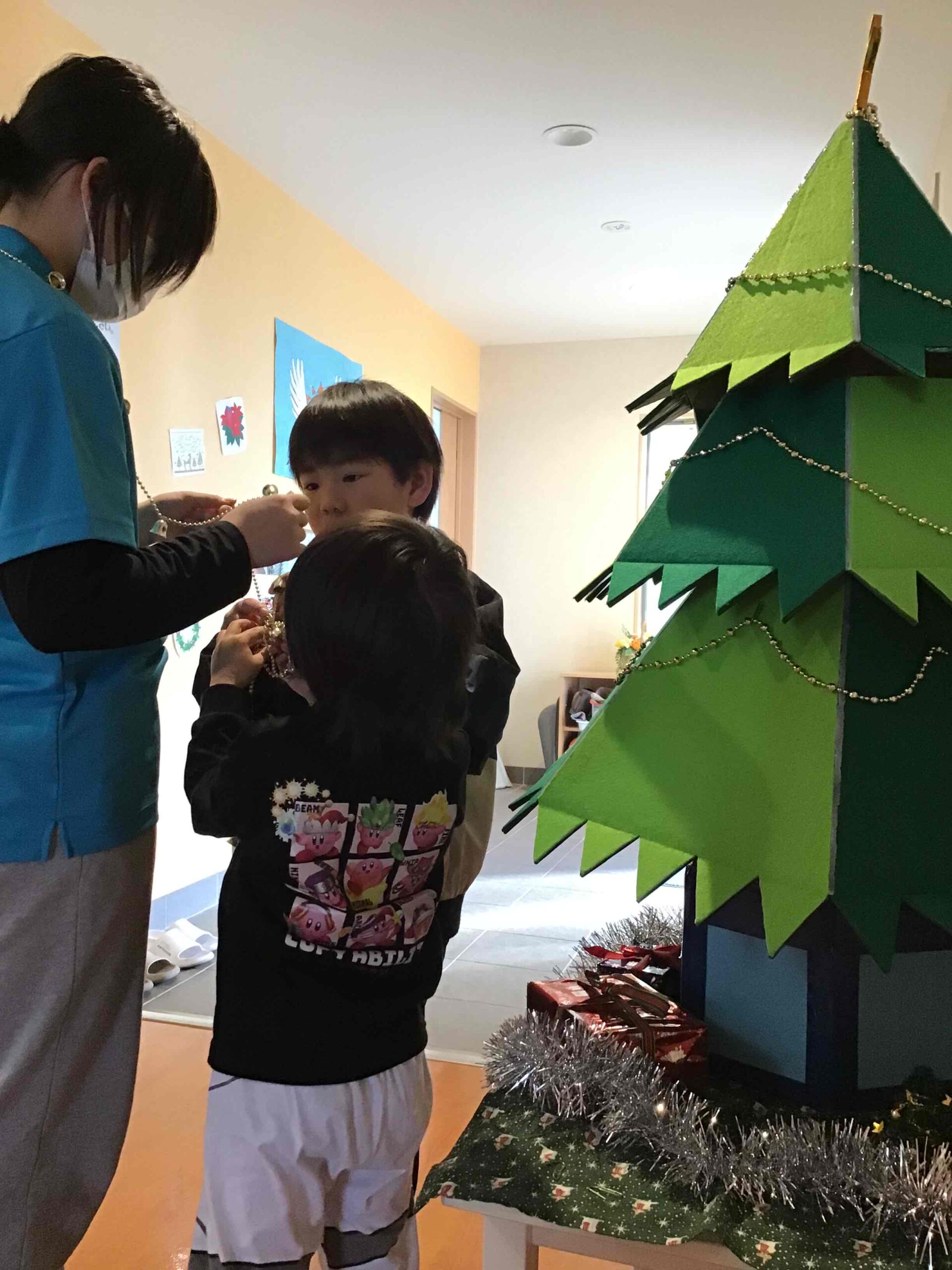 子ども?たちがクリスマスツリーの飾りつけを頑張ってくれました!